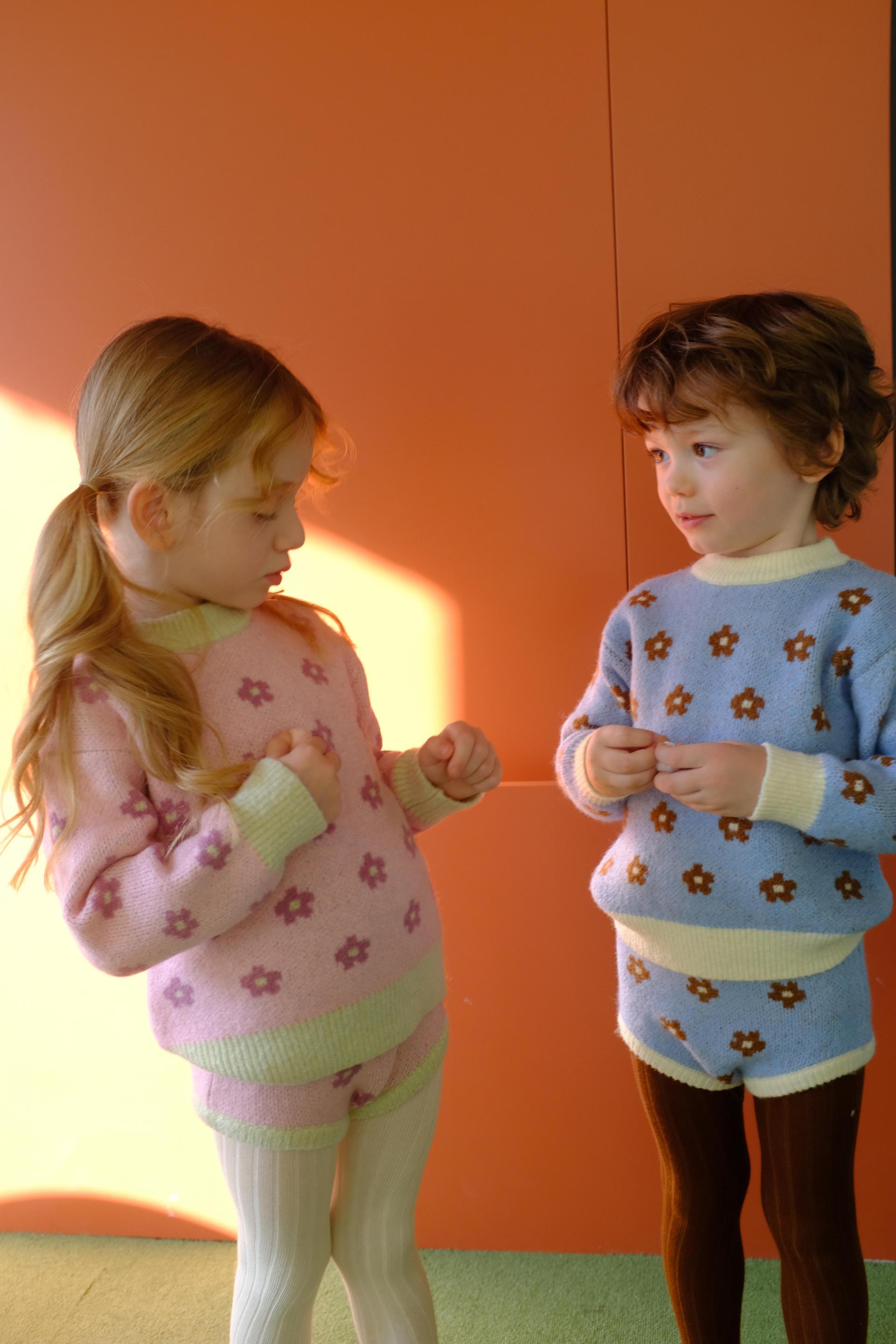 - 포근한 니트 소재에 플그만의 데이지 패턴을 가득 담은 니트 블루머 셋업입니다.