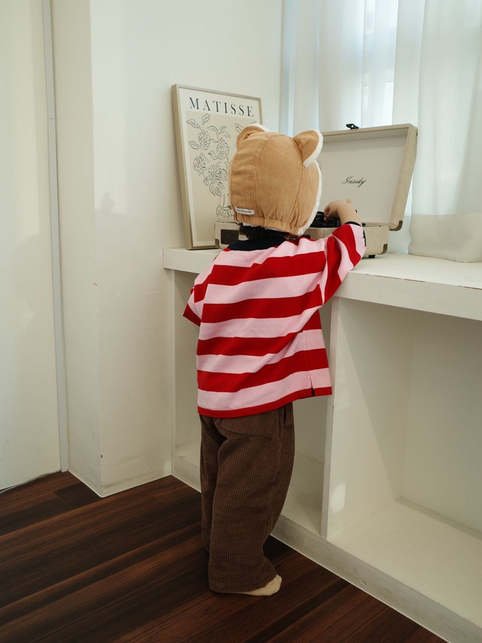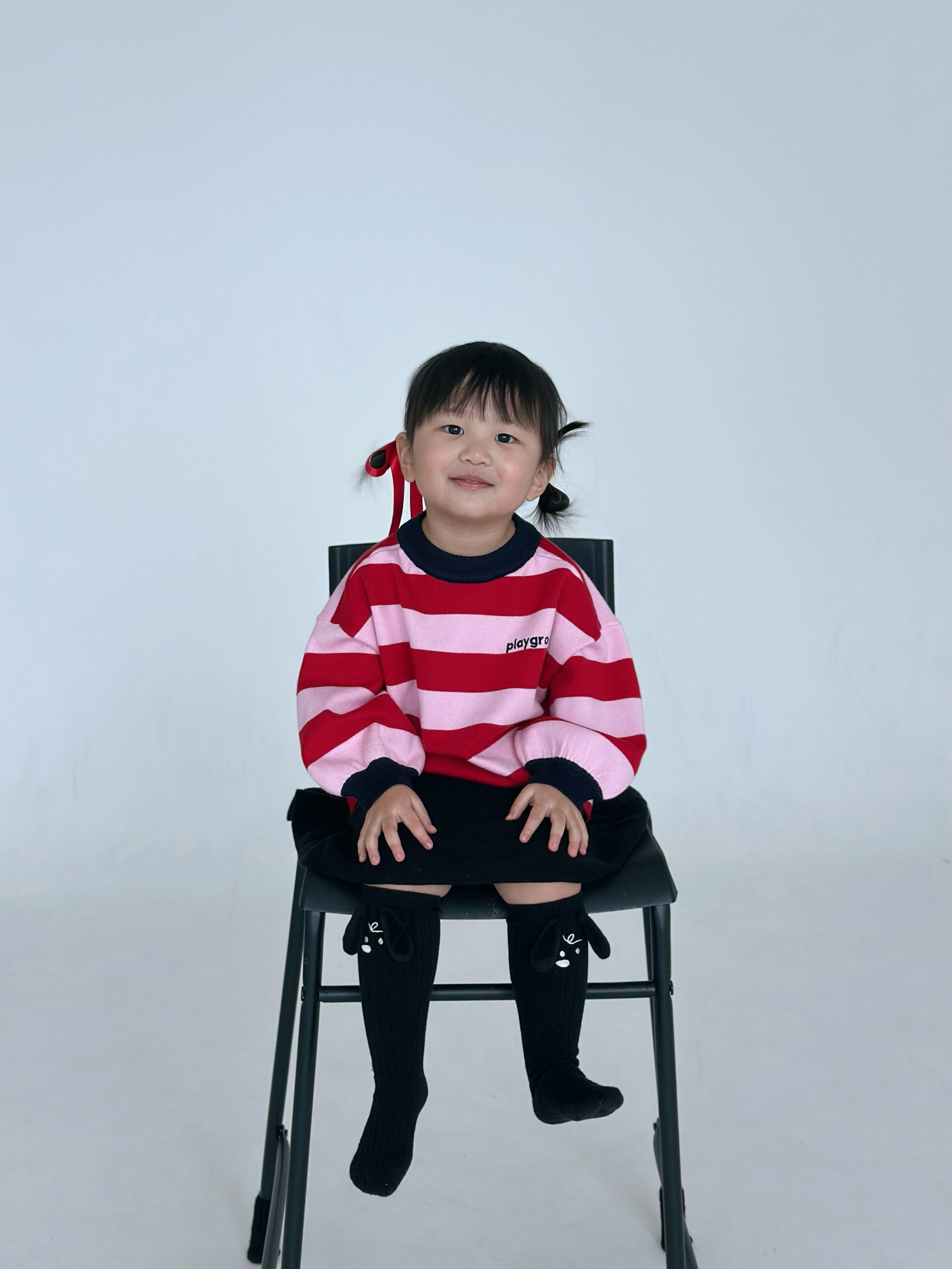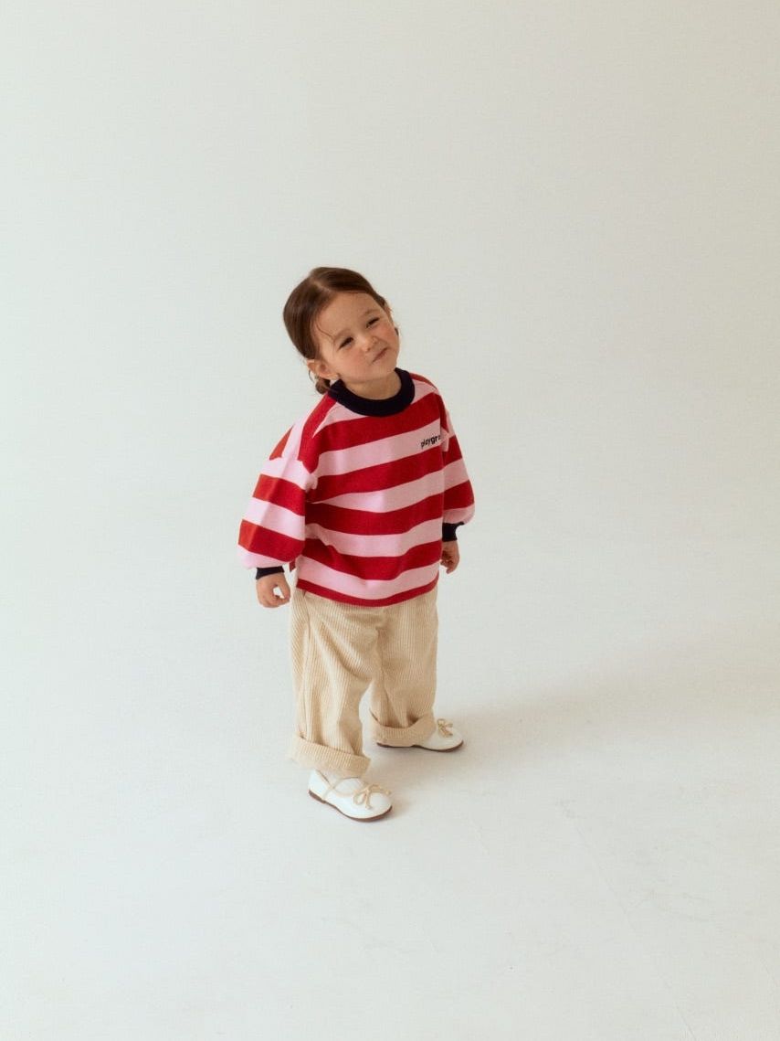 레드와 핑크 스트라이프 패턴이 경쾌함을 더해주는