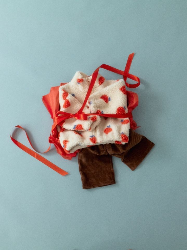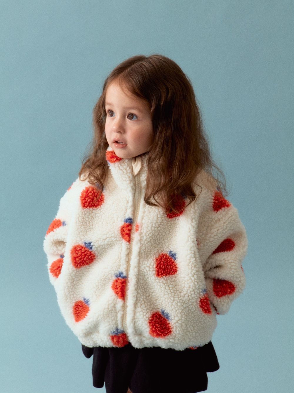 플레이그라운드만의 귀여운 딸기패턴이 더해진 뽀글이 아우터입니다.